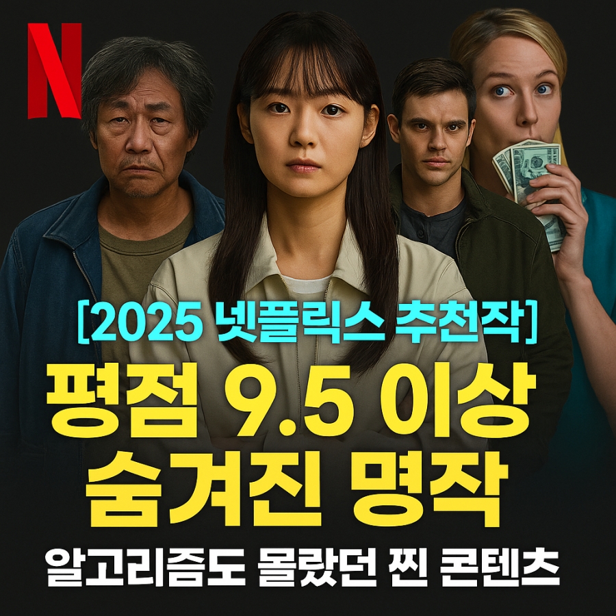 [2025 넷플릭스 추천작] 평점 9.5 이상 숨겨진 명작 TOP 5 - 알고리즘도 몰랐던 찐 콘텐츠 넷플릭스에 이런 명작이 숨어 있었다고요? 2025년 기준 평점 9.5 이상, 알고리즘 추천을 넘어선 진짜 ‘찐 콘텐츠’ 5편을 소개합니다. 드라마부터 리얼리티까지, 지금 꼭 봐야 할 작품을 만나보세요. 알고리즘에 맡기지 말고, 내 기준으로 고르자 넷플릭스를 보다 보면 이런 고민 해본 적 있으시죠? “추천에 나온 건 다 봤는데, 뭐 더 재미있는 거 없을까?” 바로 그럴 때 필요한 게 숨겨진 명작입니다. 단순히 ‘조회수’로 인기 많은 콘텐츠가 아니라, 전 세계 시청자들이 실제로 극찬한 작품들. 오늘은 2025년 현재 평점 9.5 이상을 받은 진짜 명작 5편을 소개해드릴게요. ✅ 넷플릭스 평점 9.5, ..