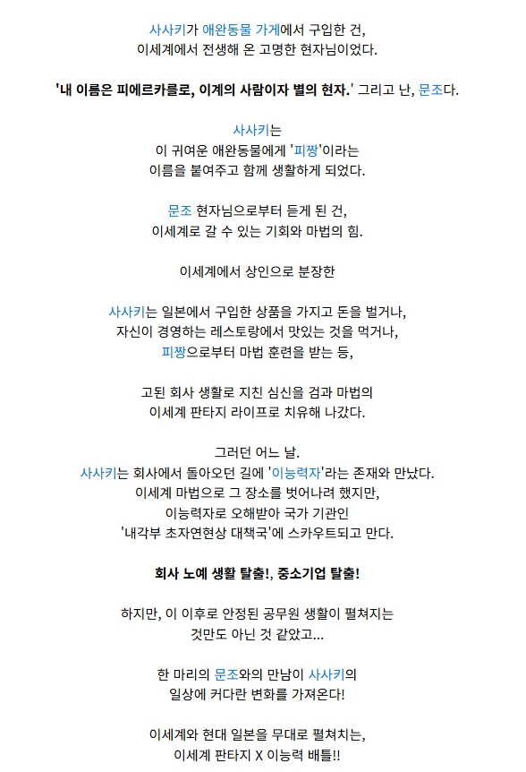 🔸 이세계 + 현대물 조합이 끌리는 분