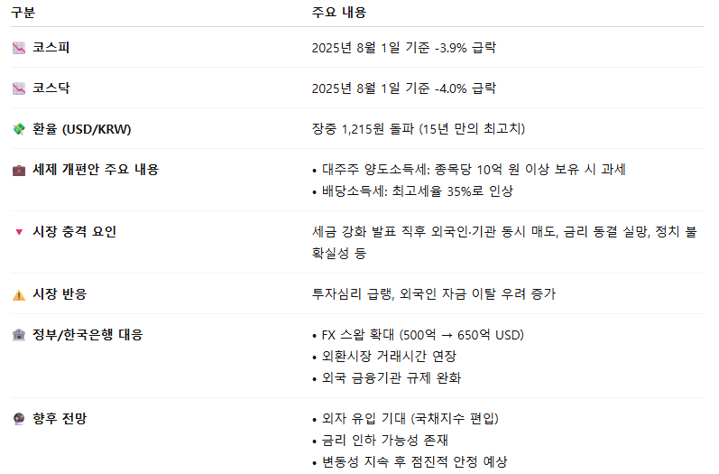 2025년 8월 1일, 정부의 세제 개편안이 발표되면서 국내 증시가 크게 흔들렸습니다.