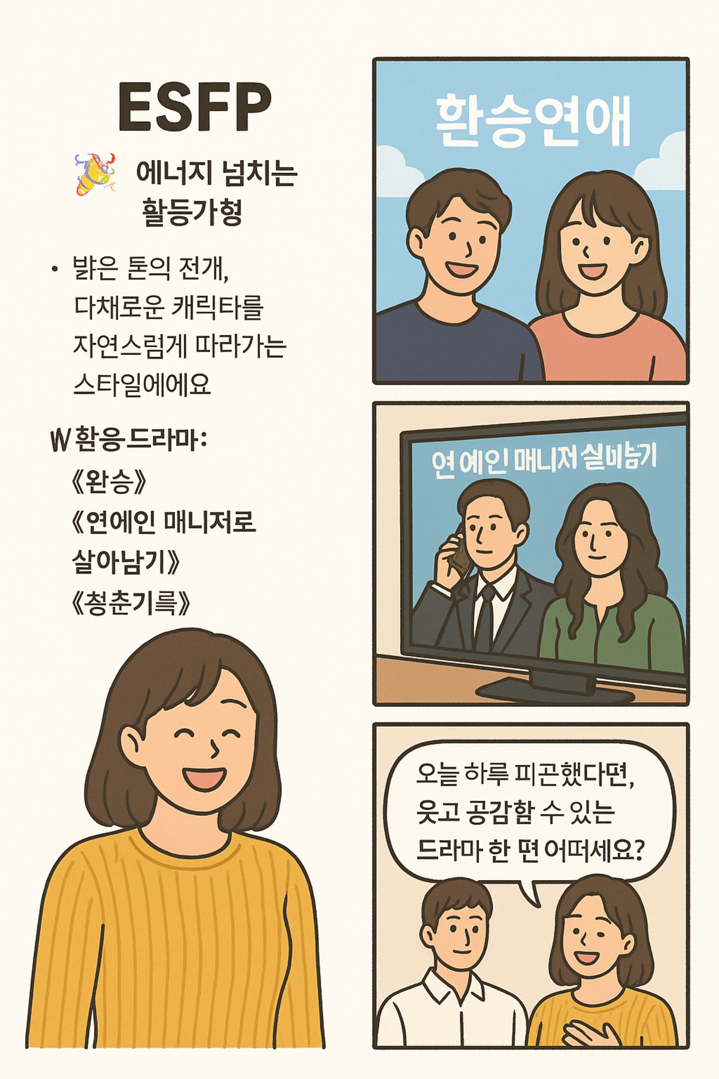 🎉 ESFP – 에너지 넘치는 활동가형의 드라마 취향