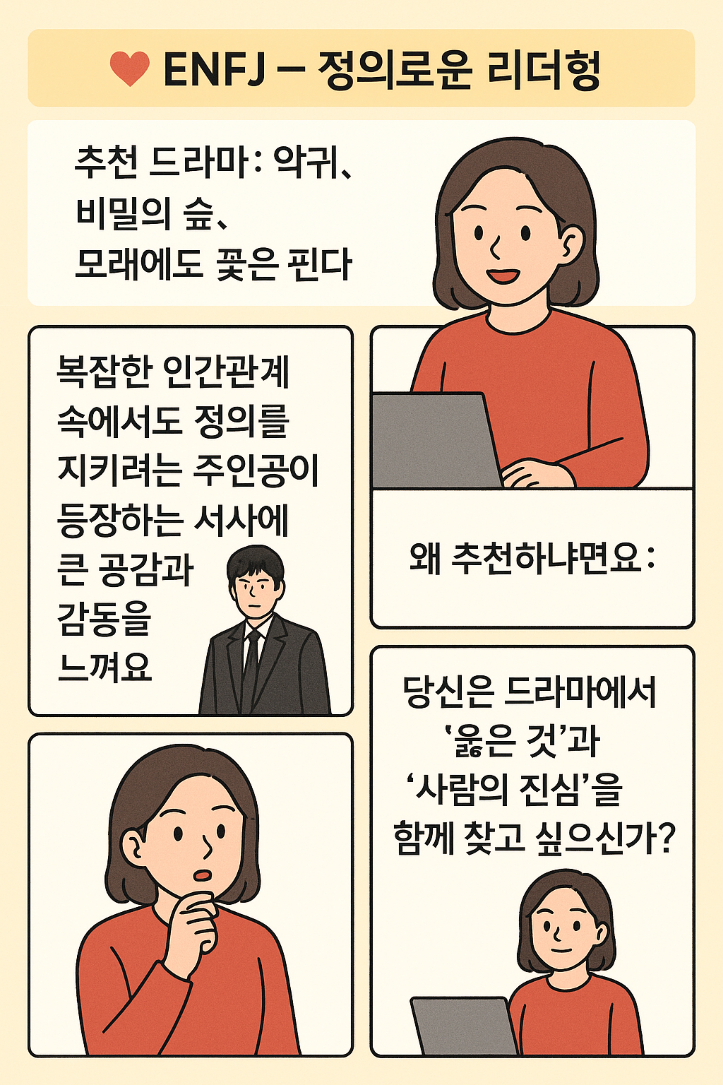 🎯 ENFJ – 정의로운 리더형의 드라마 취향
