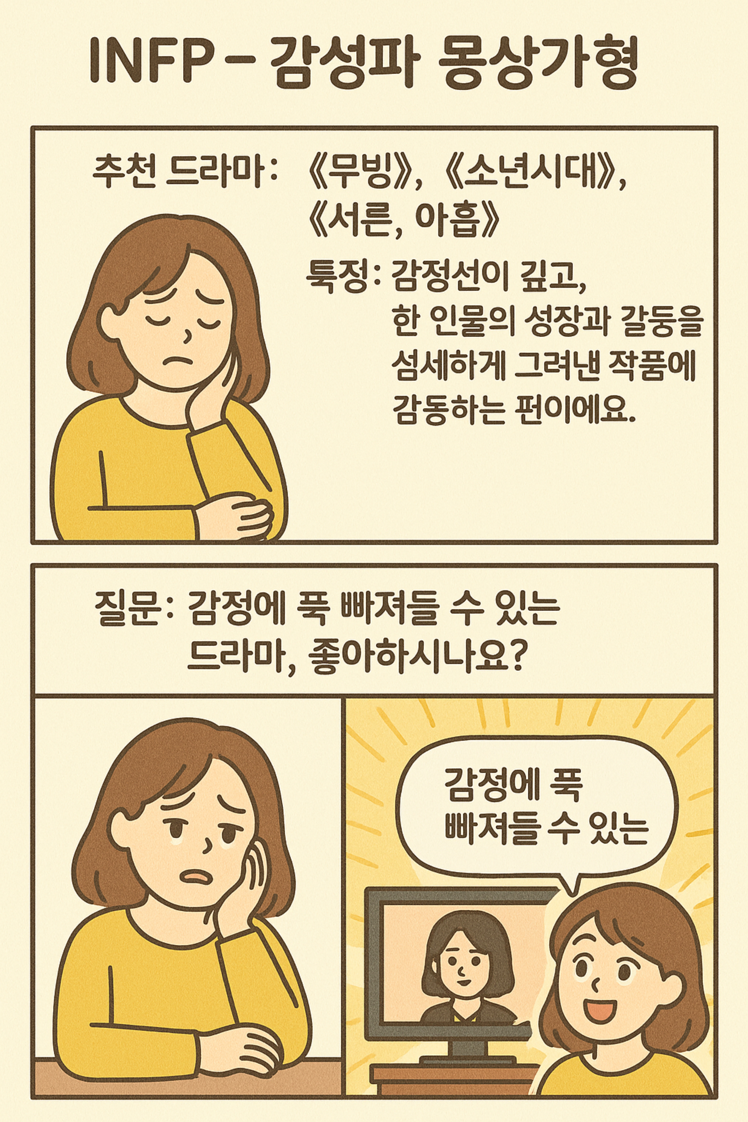 ▪️ INFP → 감정 공감형 드라마로 눈물 정화