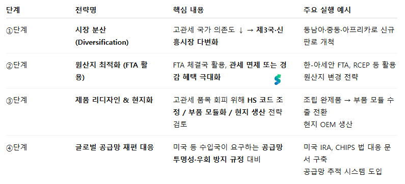 🔸 관세 대응 4단계 수출 전략