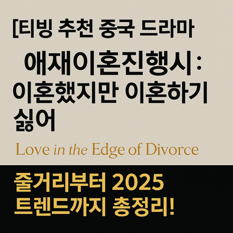 티빙 방영 중국 숏폼 드라마 《애재이혼진행시》! 이혼과 사랑 사이, 현실 감정선을 세밀하게 담아낸 로맨스 드라마를 줄거리부터 등장인물, 2025 트렌드까지 한눈에 정리했습니다.