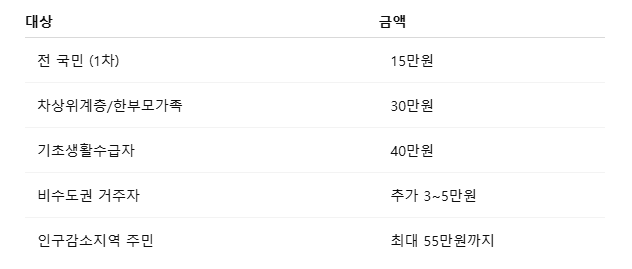 2025 민생회복 소비쿠폰 최대 55만원 지급! 신청 방법부터 사용처, 지역별 지급 기준까지 쉽게 정리한 최신 정보 총정리