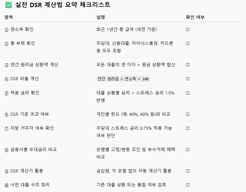 ▪️ 이미지 : 실전 DSR 계산법 요약 체크리스트