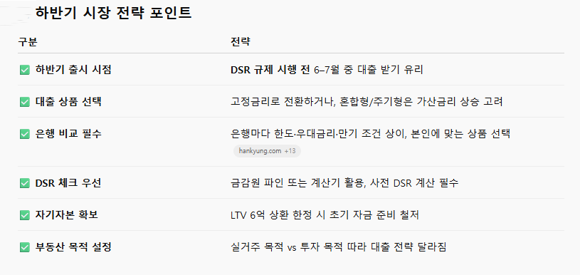 - DSR 3단계 전에 미리 대출 실행 (6-7월 집중)
