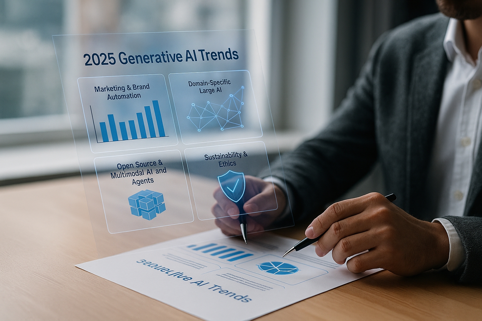 ✔️ 2025년 생성형 AI 트렌드는 마케팅 자동화, 도메인 특화 AI, 오픈소스 에이전트, 금융권 도입 등으로 구체화되고 있습니다.