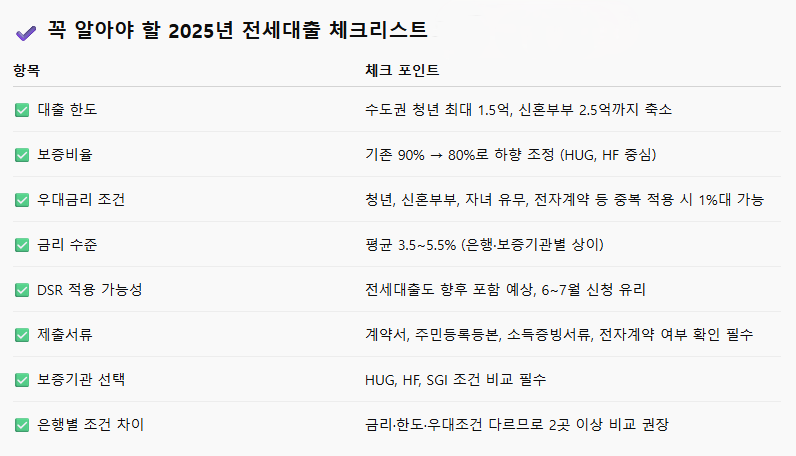 2025년 전세대출 한도와 금리 변화 총정리! 꼭 알아야 할 조건, 한도 축소, 우대금리 꿀팁까지 클릭률 높은 핵심 정보 안내.