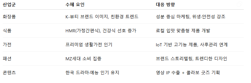 ▪️ 한국 기업은 이 흐름에 맞춰 마케팅, 수출 전략 조정 중