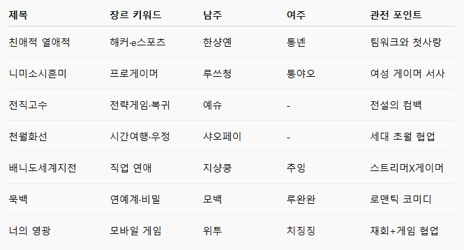 ✅ 요약 비교표 – 게임 로맨스 드라마 총정리